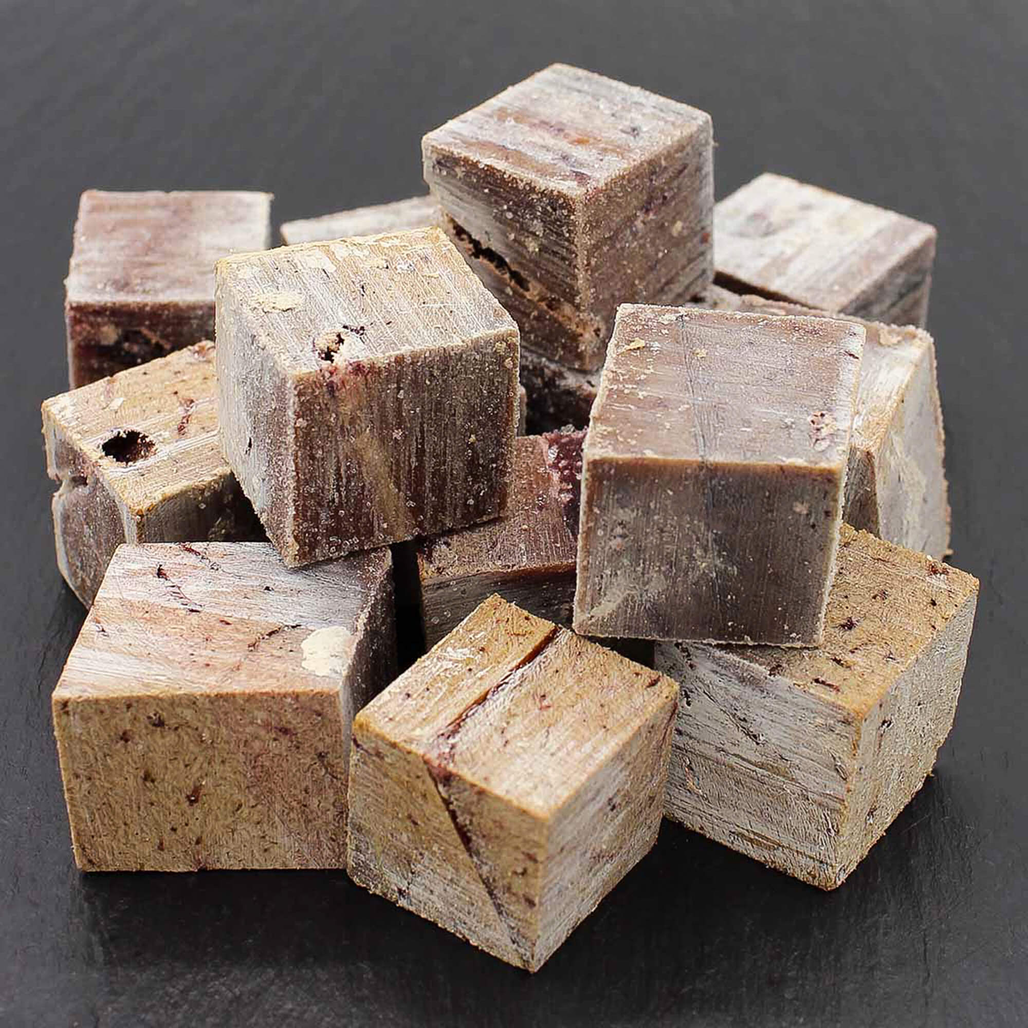 Die praktische Würfelform macht das Portionieren für Selber-Barfer denkbar einfach. Stückiges Fleisch, viel zum Kauen und ausgezeichnete Qualität - all das passt problemlos in die Form eines kleinen Würfels.