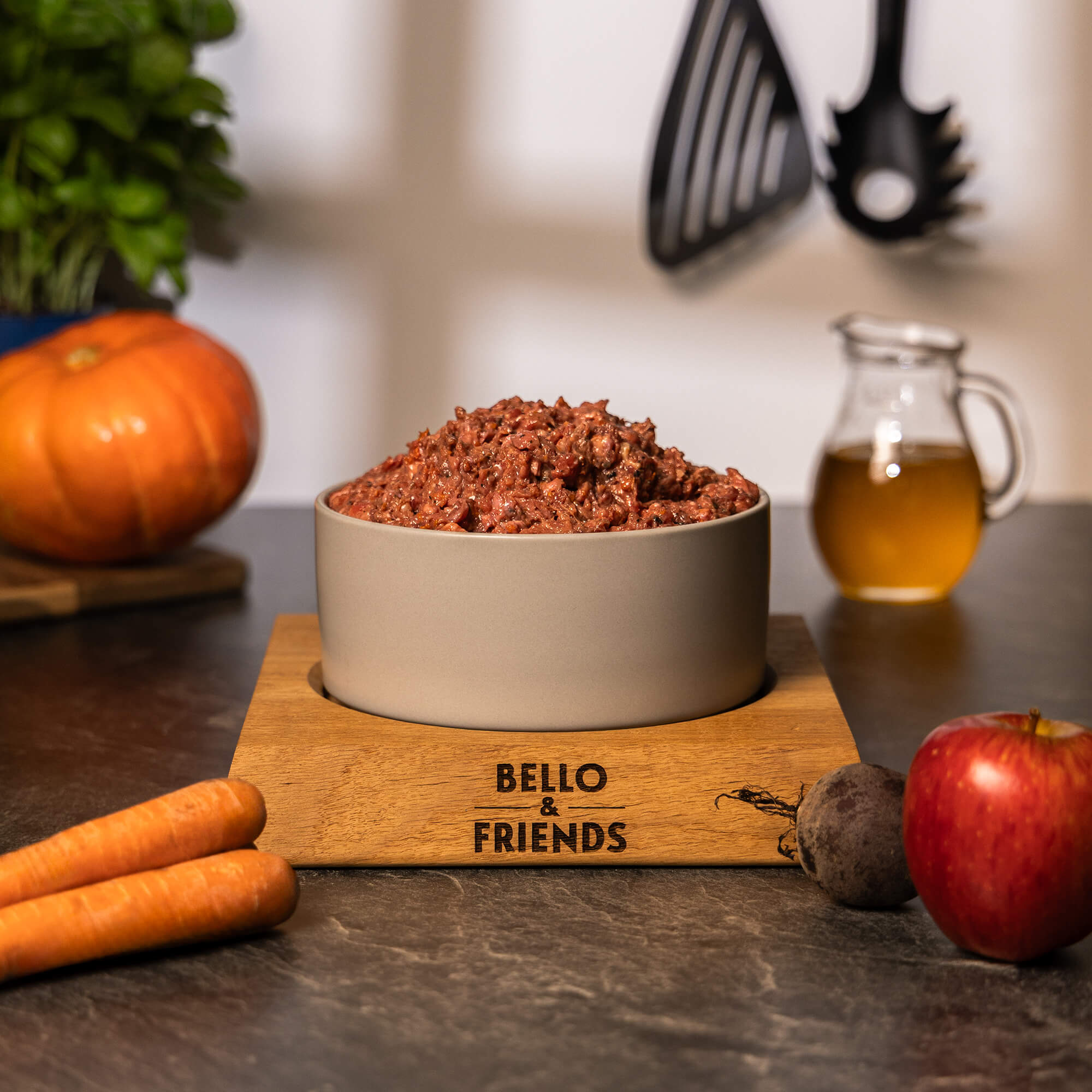 Karotten, rote Beete, Kürbis und Äpfel ergänzen diese Proteinquellen mit einer Fülle von Vitaminen und Mineralstoffen, die die Vitalität fördern und das Verdauungssystem unterstützen. Zusätzlich angereichert mit Bierhefe, reich an B-Vitaminen, Leinöl für eine gesunde Haut und Kräutern der Provence für eine aromatische Note, bietet dieses Menü alles, was dein Hund für eine ausgewogene Ernährung benötigt.