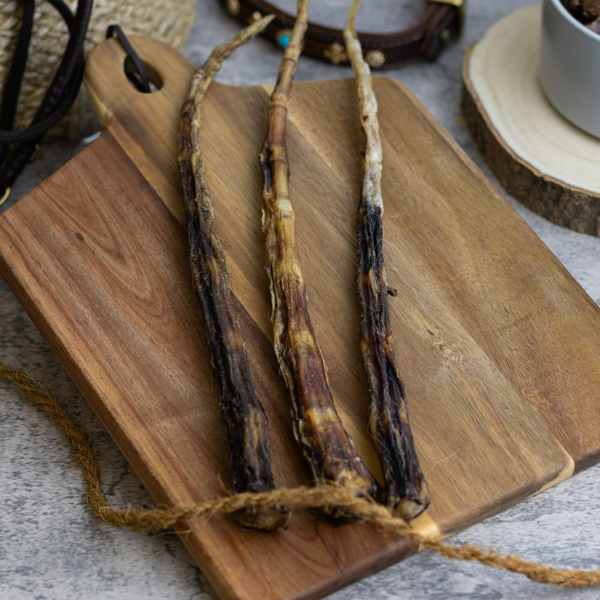 Unsere Ochsenschwänze werden in unserer eigenen Manufaktur unter höchsten Qualitätsstandards natürlich getrocknet. Wir verzichten vollständig auf Konservierungsstoffe, Zucker und Chemikalien, um deinem Hund nur das Beste zu bieten. Der Knochenanteil im Ochsenschwanz sorgt zudem für einen natürlichen Kalziumausgleich, der zur Stärkung der Knochen und Zähne deines Hundes beiträgt.