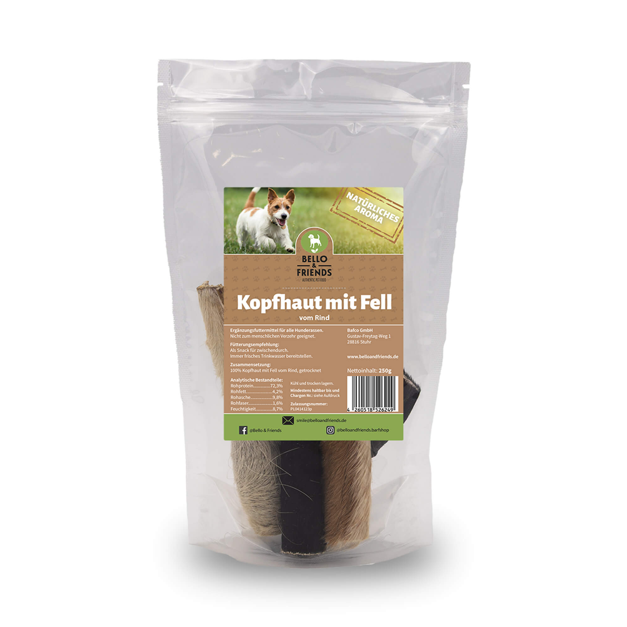 Produktinformationen "Rinderkopfhaut mit Fell getrocknet 250g"