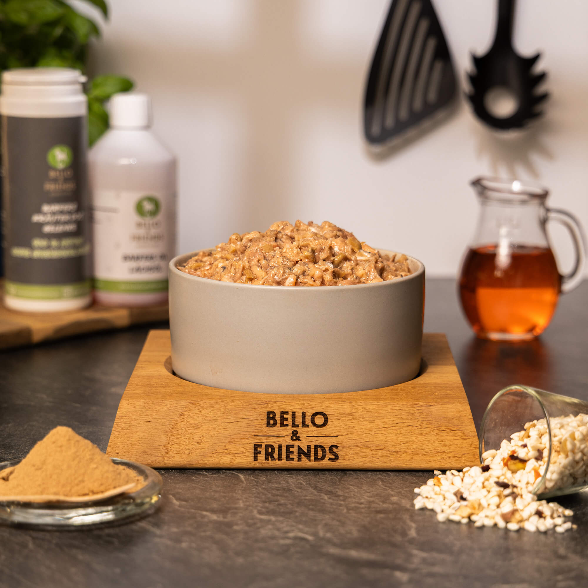 Bitte beachte, dass dieses Produkt allein keine vollwertige und ausgewogenen Mahlzeit für Deinen Hund darstellt, sondern nur ein Einzelfuttermittel ist. Im Rahmen eines BARF-Plan müssen noch pflanzlichen Anteile, Öle und Zusätze beigefügt werden. Falls Du dazu Fragen hast, sprich uns an, oder vertrau auf die Qualität unserer BARF Complete Menus, wo wir für Dich die optimale Komposition bereits zusammengestellt haben.