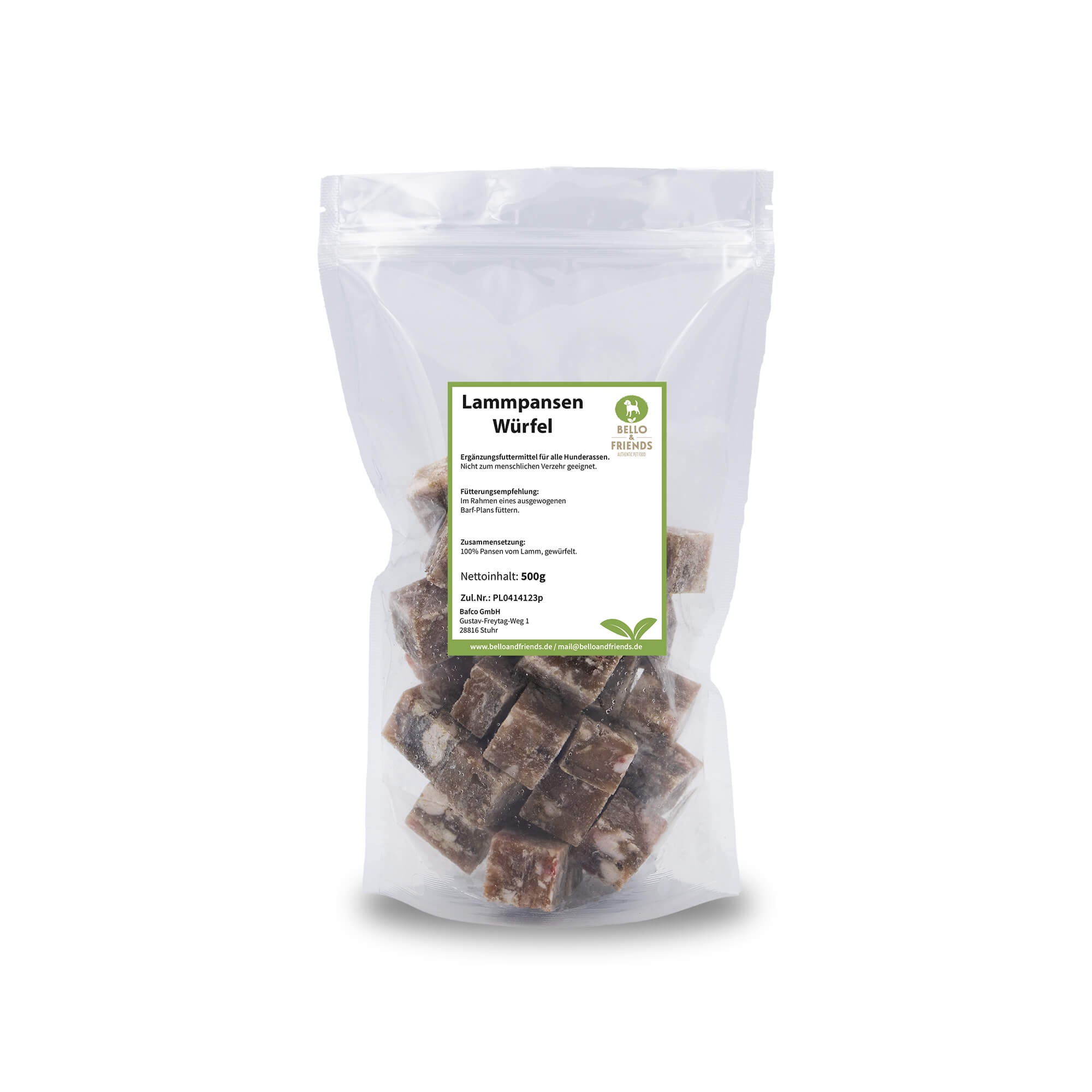 Füge Deinem individuellen BARF-Menü eine Portion Natur hinzu. Vertraue auf 100% Lammpansen von Bello & Friends – natürlich, nährstoffreich und maßgeschneidert für die Bedürfnisse Deines treuen Begleiters.