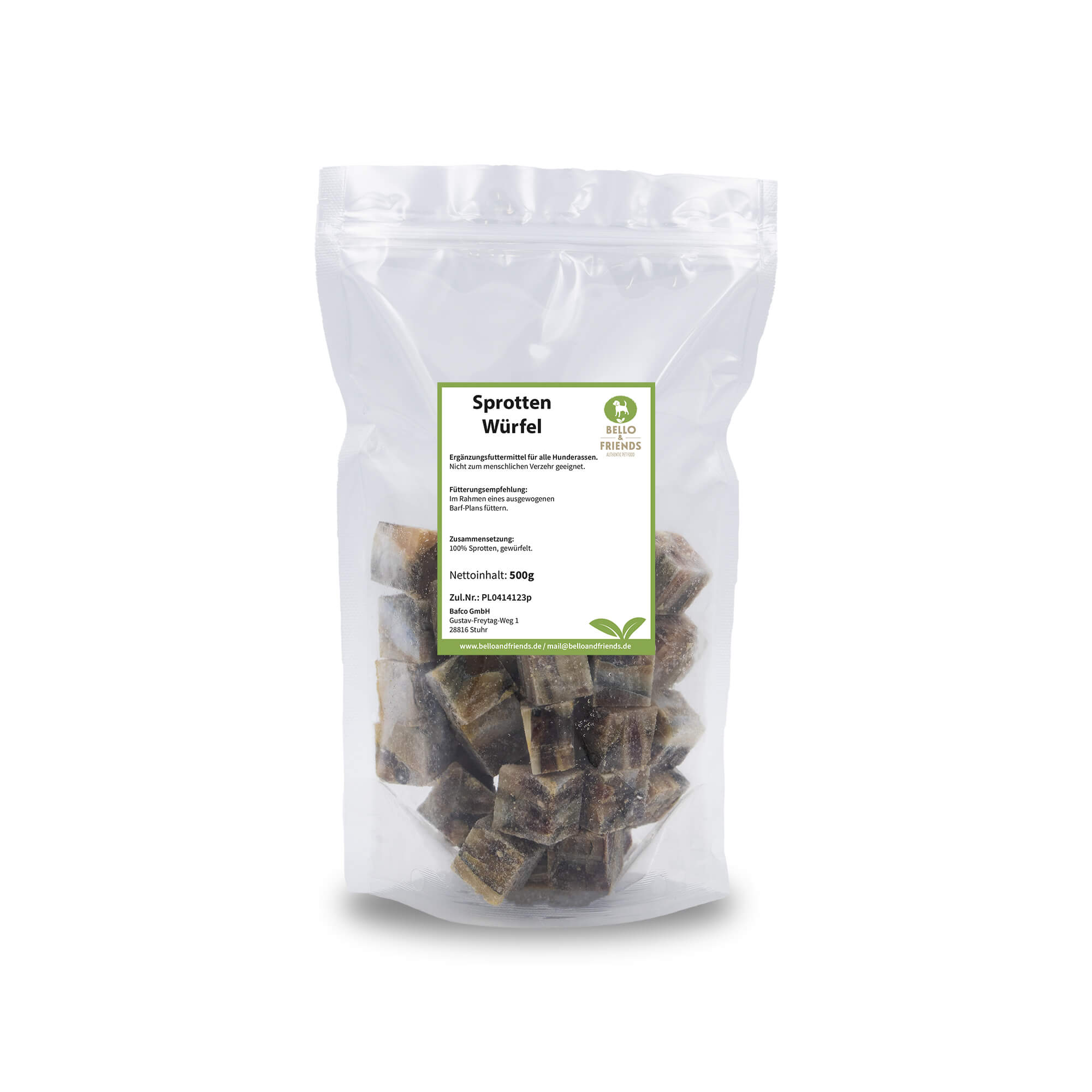Die praktische Würfelform erleichtert das Portionieren und stellt sicher, dass dein Hund die richtige Menge dieser nährstoffreichen Zutat erhält, ohne Verschwendung. Ob als Teil der täglichen Mahlzeit oder als gesunder Snack, die Sprotten-Würfel sind eine saubere und einfache Lösung, um die Ernährung deines Hundes natürlich zu ergänzen.