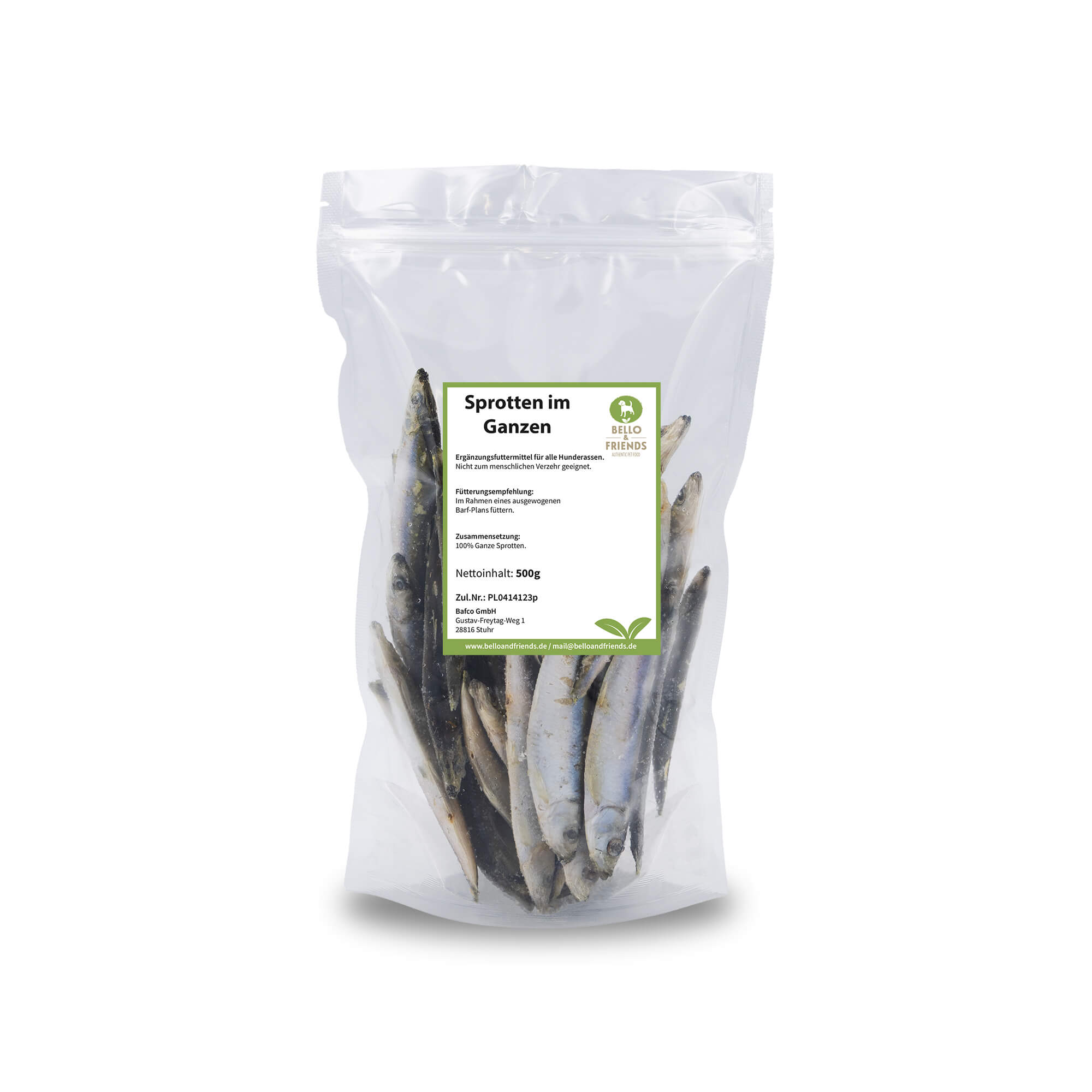 Ideal für jedes individuelle Menü, fördern unsere Sprotten nicht nur die Haut- und Fellgesundheit, sondern unterstützen auch die Herzgesundheit und die kognitive Funktion. Als gesunde Einzelkomponente bereichern sie jede Barf-Mahlzeit und bieten eine leckere Abwechslung, die dein Hund lieben wird.