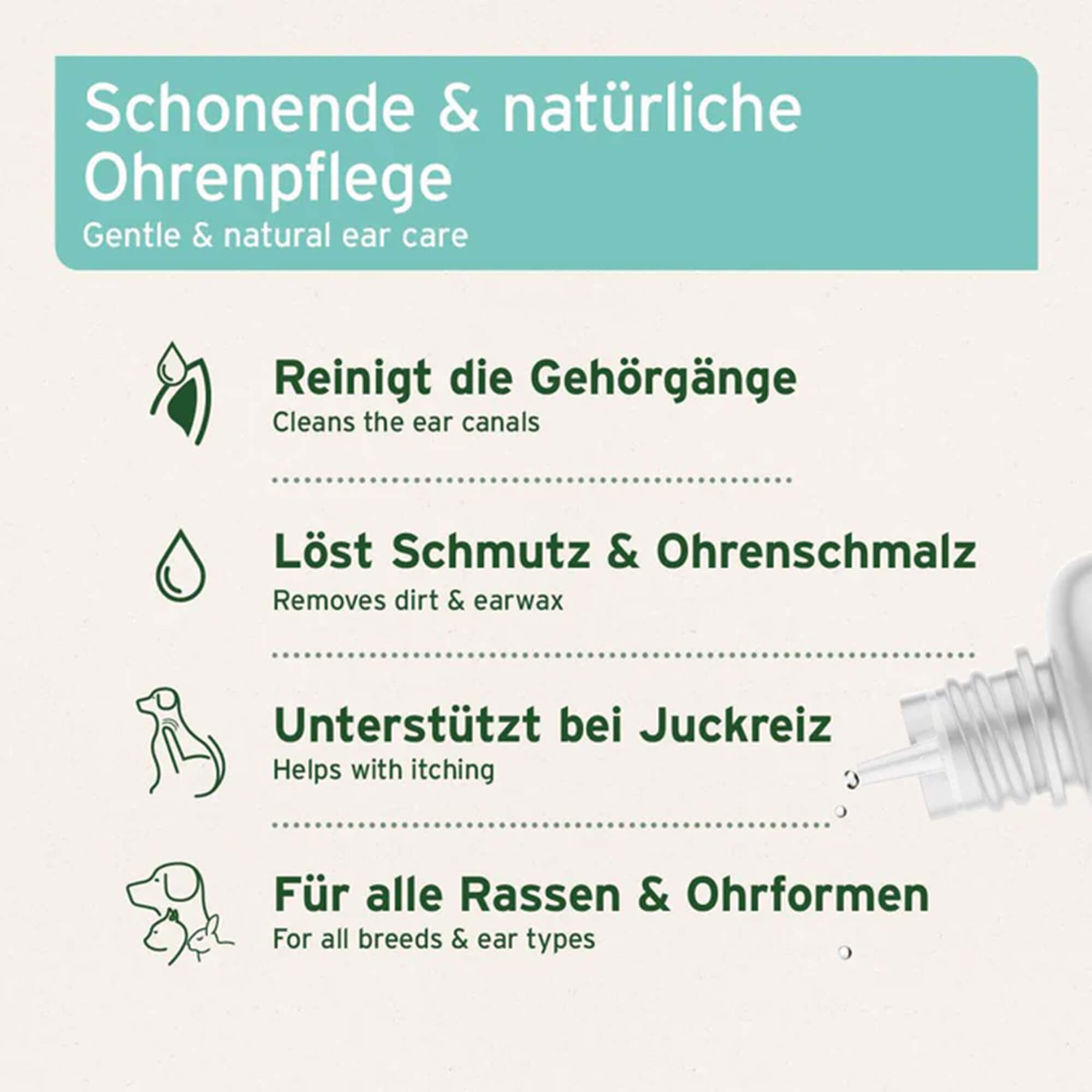 Die Anwendung ist denkbar einfach: Der praktische Flaschenaufsatz ermöglicht eine präzise Dosierung ohne Verschwendung. Eine tägliche Anwendung kann dazu beitragen, die Ansammlung von Ohrenschmalz und Schmutz zu verhindern, was wiederum das Risiko von Ohrinfektionen verringert. Zudem kann der Ohrenreiniger zur Vorbeugung und Linderung von Symptomen, die durch Ohrmilben verursacht werden, eingesetzt werden.