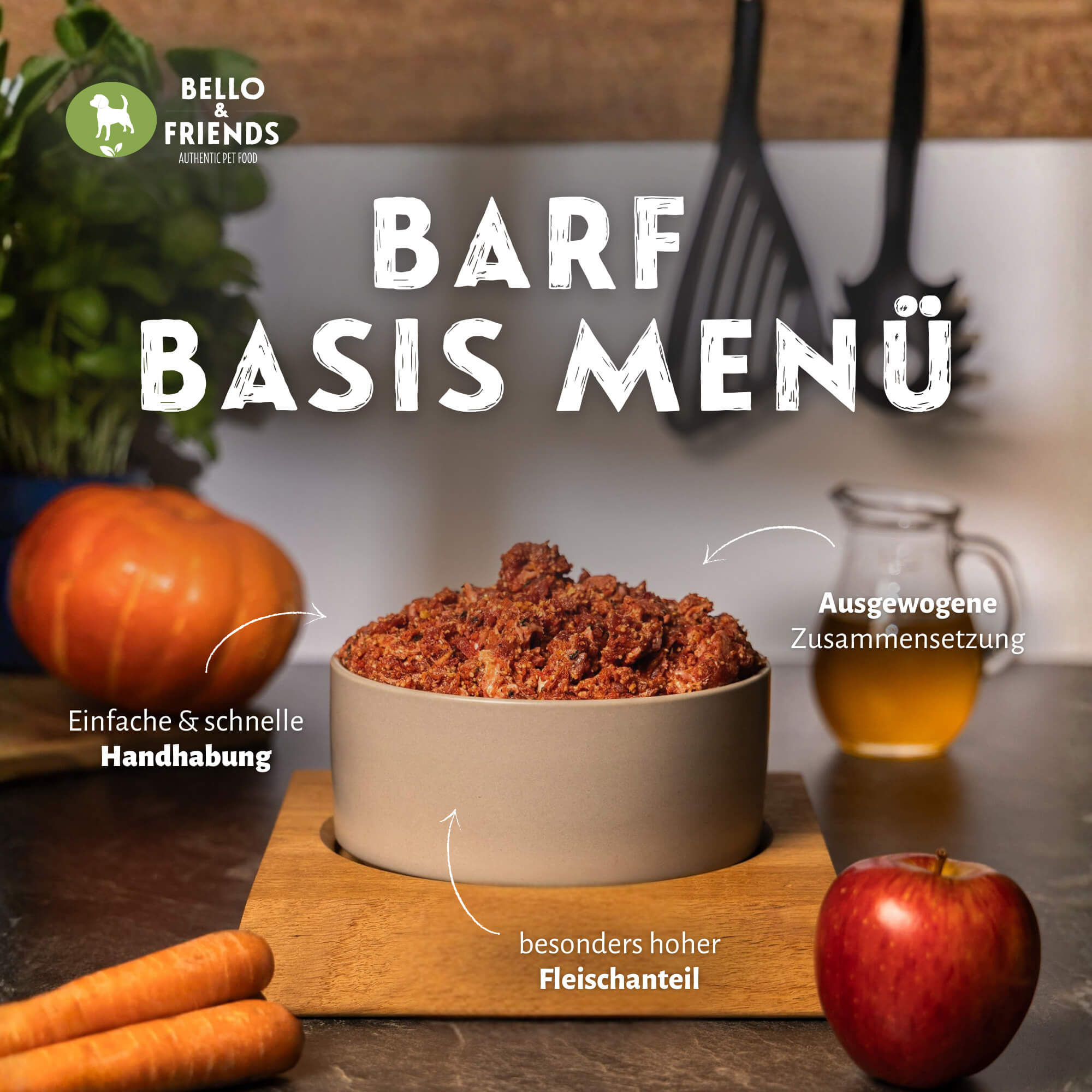 Eine feine Gemüse- und Kräutermischung ergänzt die Rezeptur mit natürlichen Pflanzenstoffen und rundet das Menü geschmacklich ab. Durch die bewusst klare Zusammensetzung eignet sich das Basis Menü besonders gut, um je nach Bedarf mit einem hochwertigen Futteröl sowie weiteren Obst- oder Gemüseanteilen ergänzt zu werden.