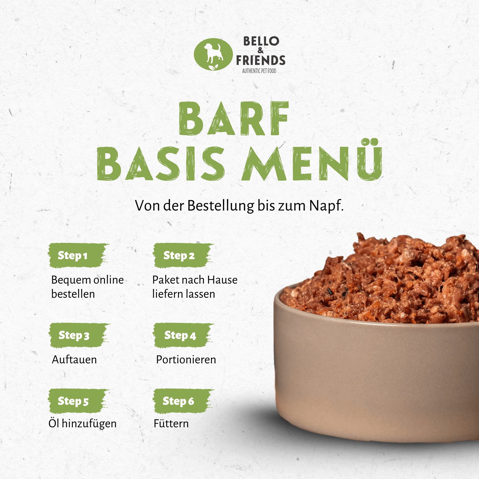 Futtermittelart: Ergänzungsfuttermittel für Hunde. Mit hochwertigen Ölen ergänzt, geeignet zum Barfen. Mit Zimmertemperatur servieren.