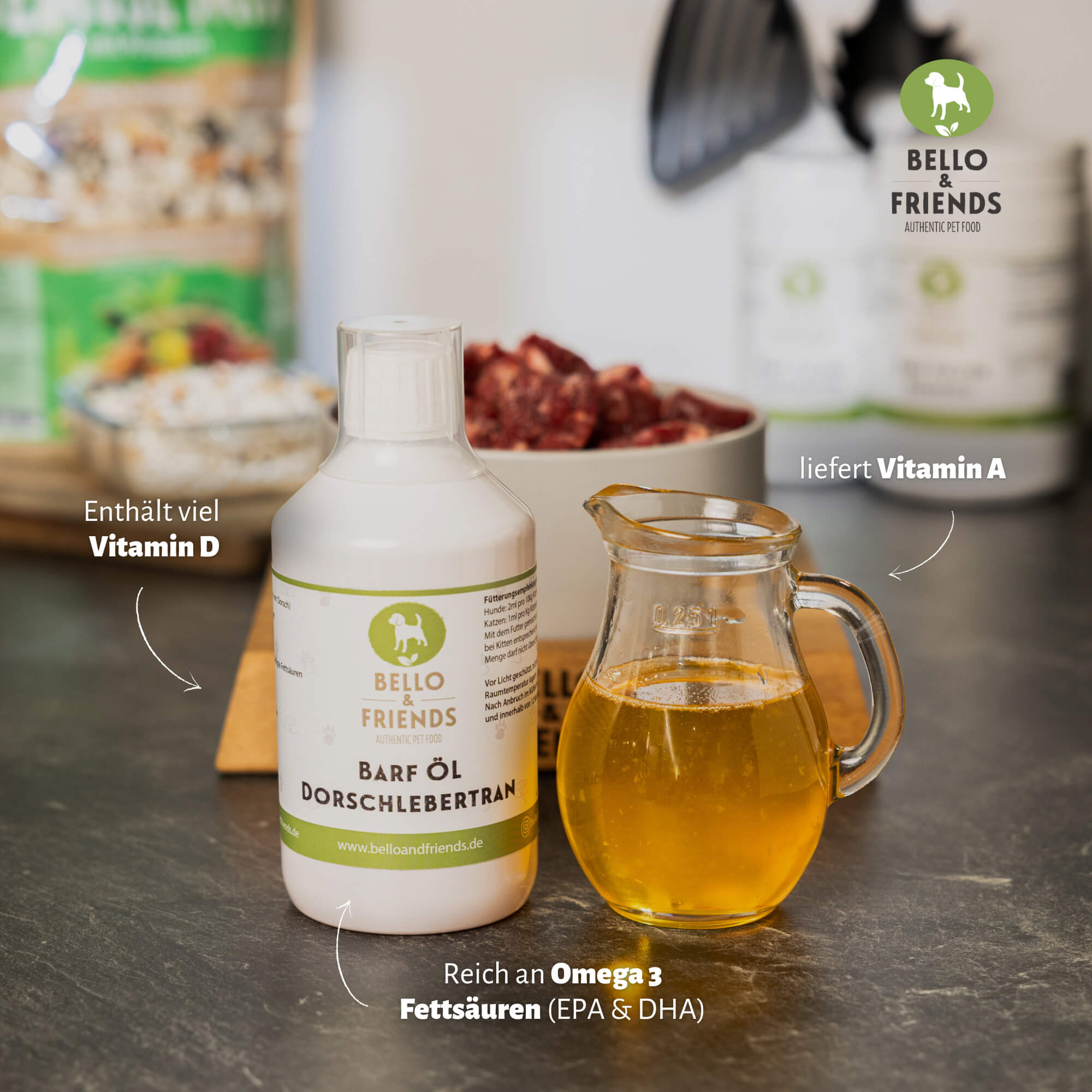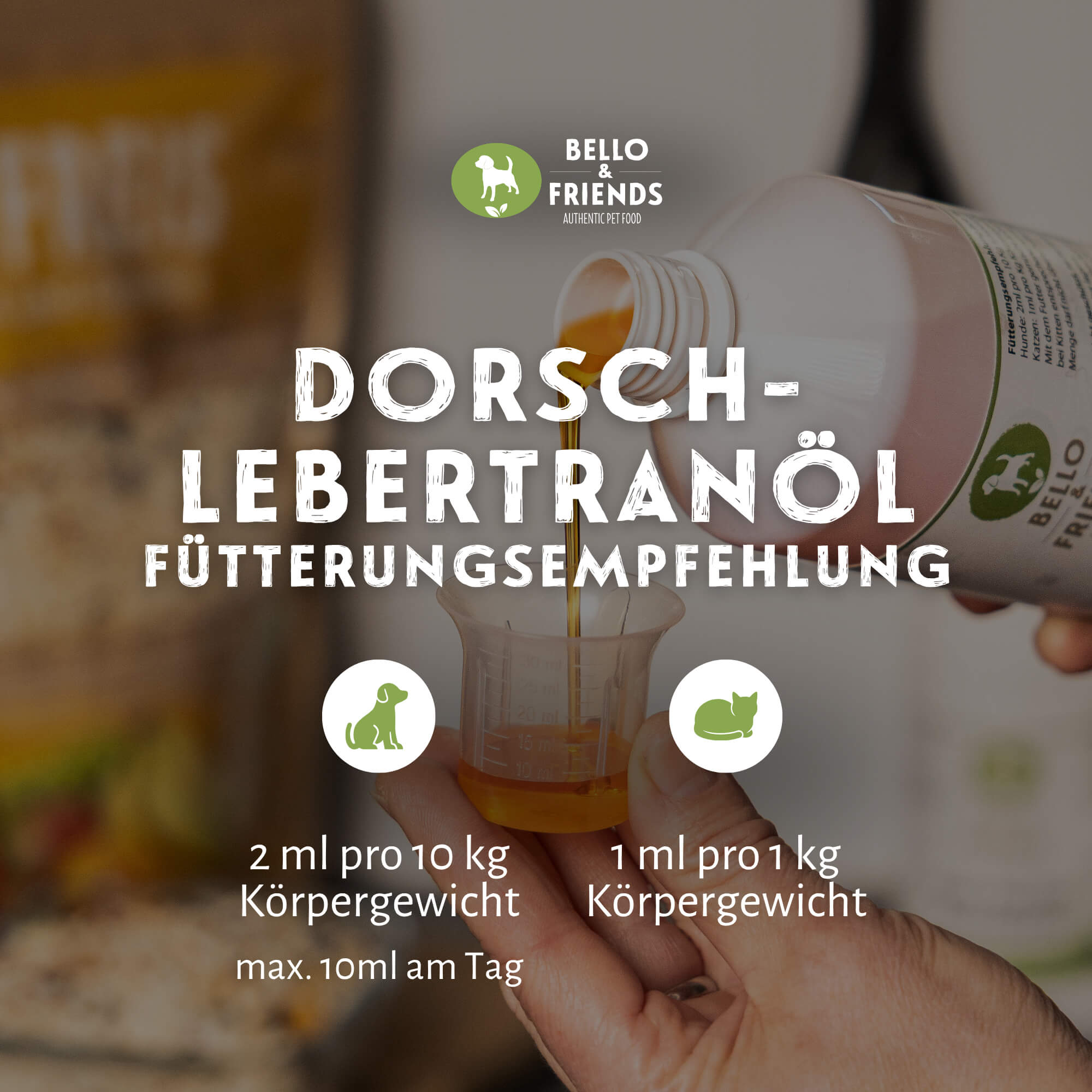 Dorschlebertran lässt sich einfach unter das tägliche Futter mischen und wird in der Regel gut akzeptiert. Die flüssige Form ermöglicht eine individuelle und bedarfsgerechte Dosierung.