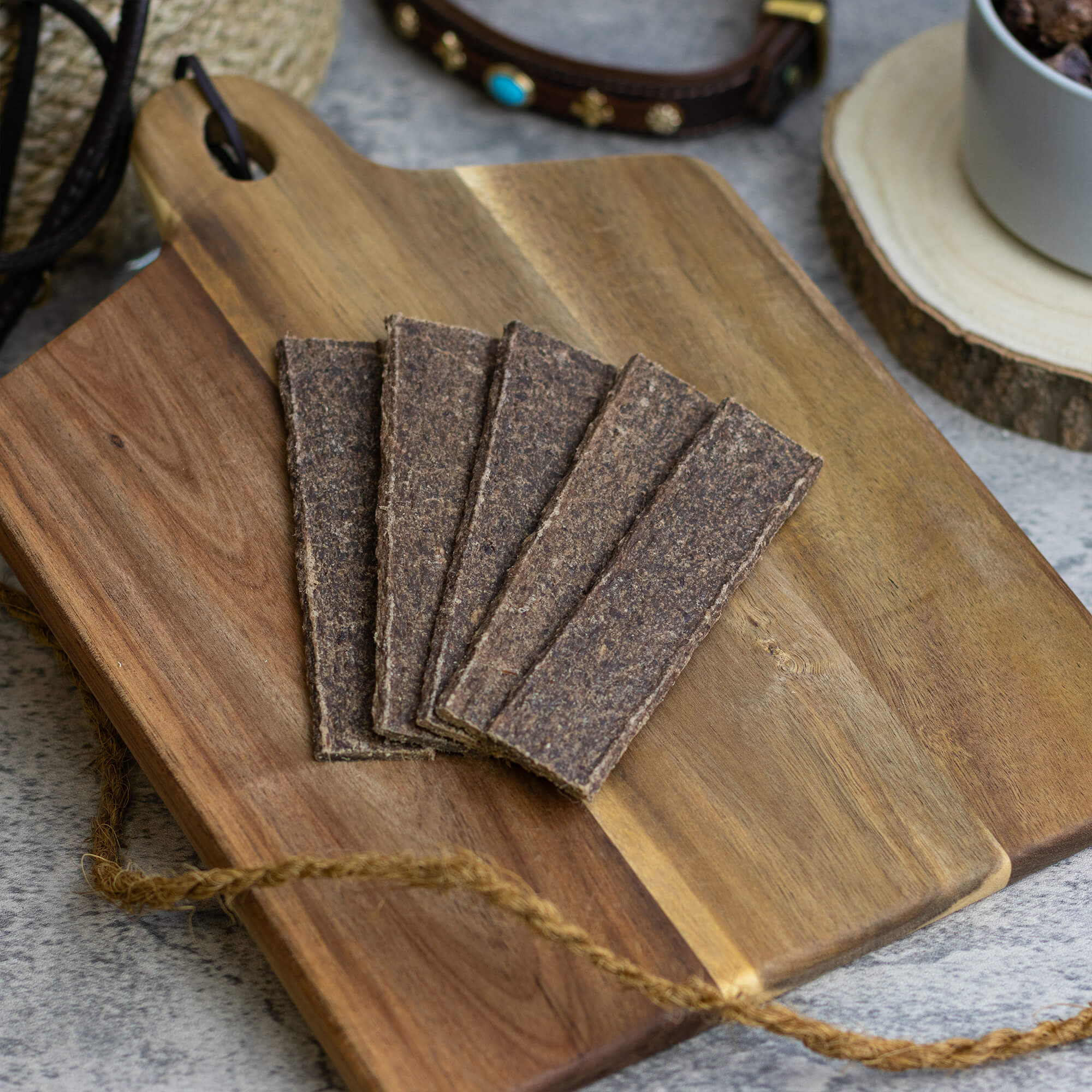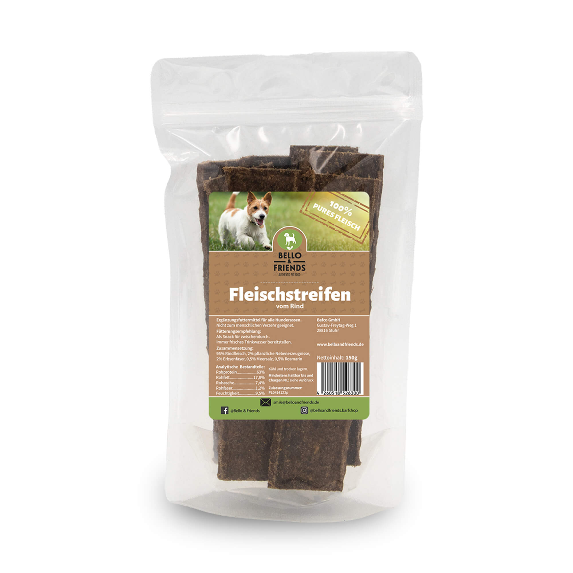Getrocknete Rindfleisch Streifen für Hunde sind eine ideale Knabberei für klein und groß.