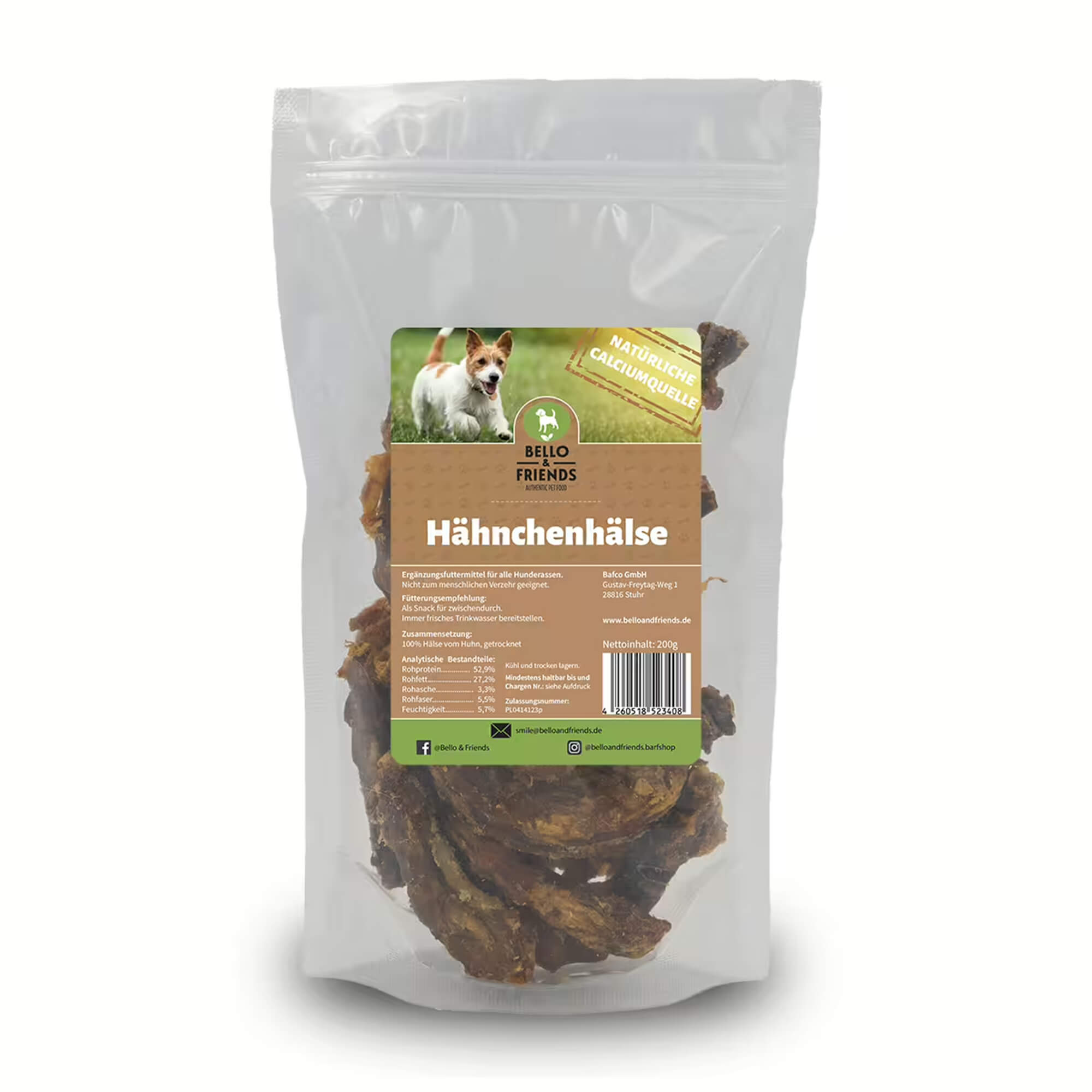 Hähnchenhälse haben einen hohe Calciumgehalt. Dieser unterstützt gleich mehrere Körperfunktionen Deines liebsten Vierbeiners.