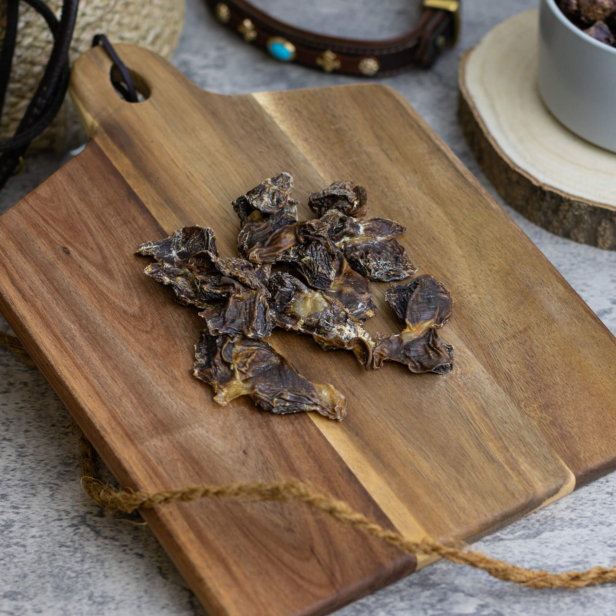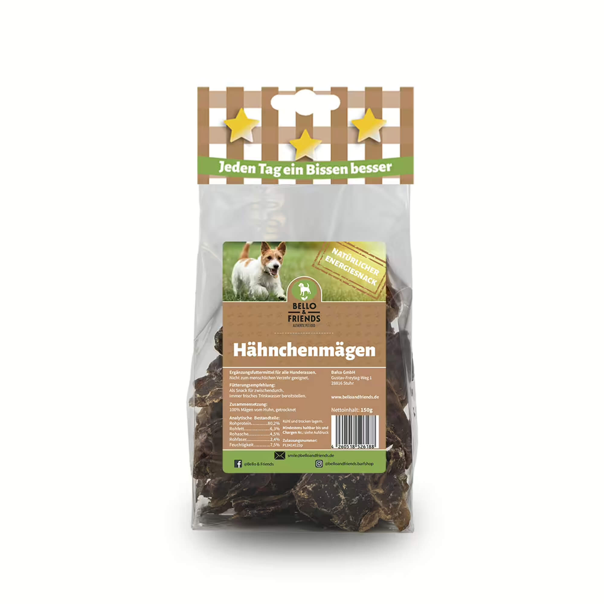 Getrocknete Hähnchenmägen sind ein beliebter Snack bei jungen und alten Hunden. Innereien schmecken Deinem Liebling nicht nur in roher Form, sondern werde auch überaus gerne als Belohnungshappen zwischen den Mahlzeiten genommen.