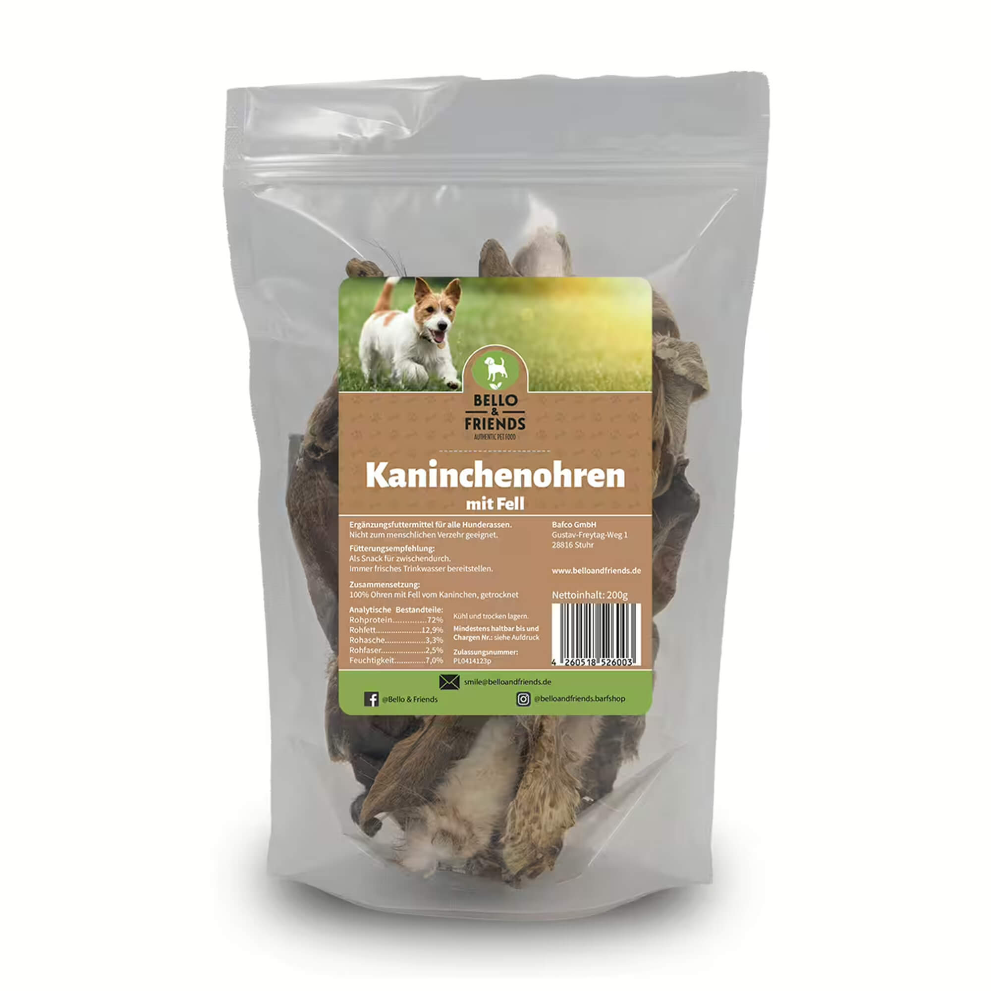 Dieser leckere Zeitvertreib reinigt nicht nur die Zähne, sondern unterstützt mit den enthaltenen Vitaminen und Mineralstoffen auch noch die Hundegesundheit. Dadurch, dass das Fell noch am Kaninchenohr dran ist, wird gleichzeitig der Magen Deines Lieblings gereignigt.