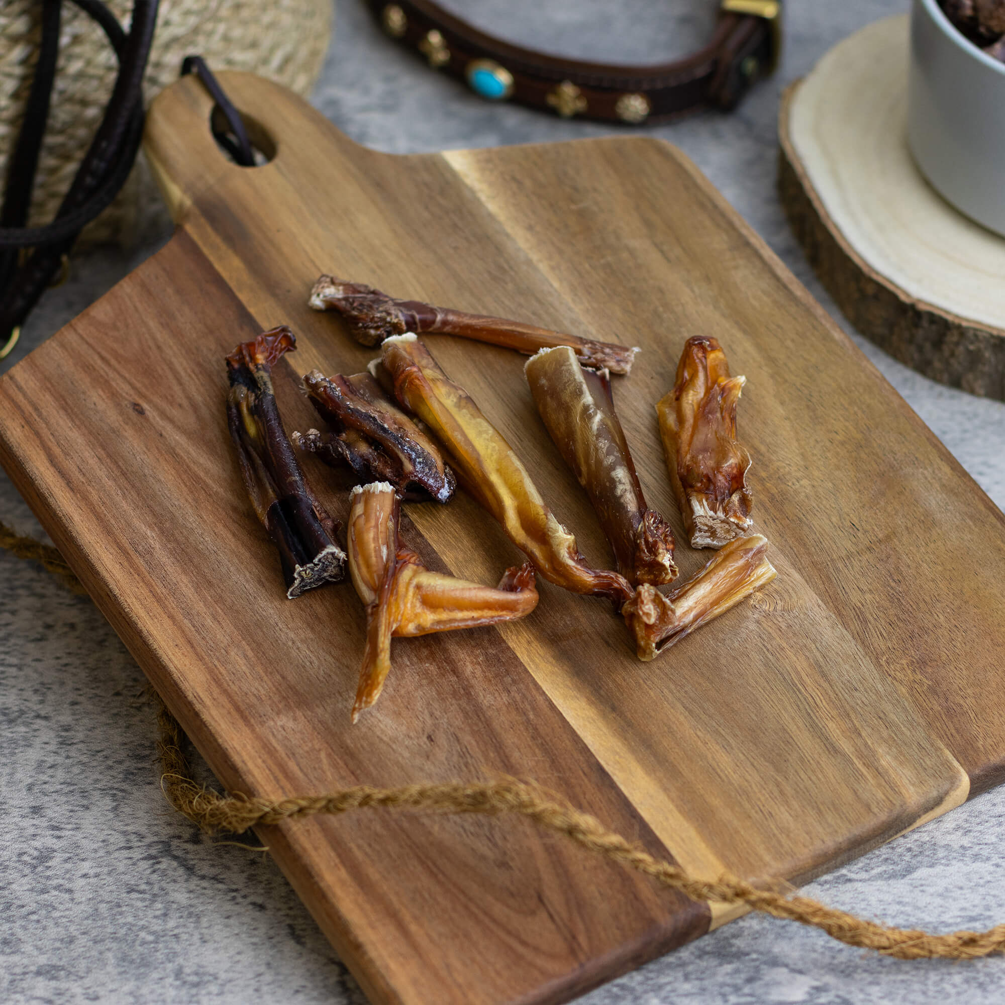 Alle unsere Kauartikel kommen aus unserer eigenen Manufaktur und werden unter höchsten Qualitätsstandards natürlich getrocknet. Wir verzichten selbstverständlich auf Konservierungsstoffe, Zucker und Chemikalien, um deinem Hund nur das Beste zu bieten.