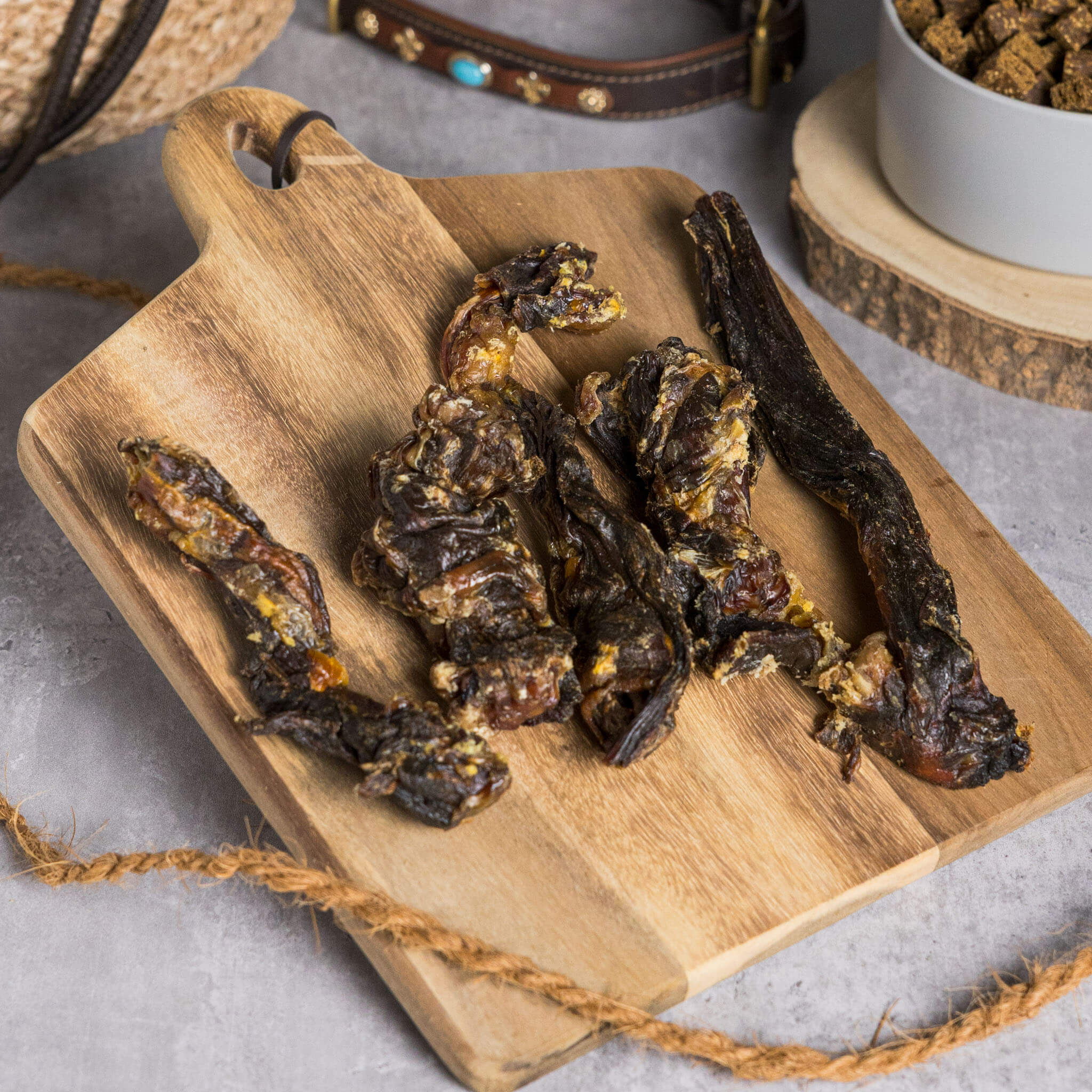 Alle Trockenartikel werden aus schlachtfrischen Rohstoffen mittels schonender Trocknung hergestellt. Und das war’s auch schon!