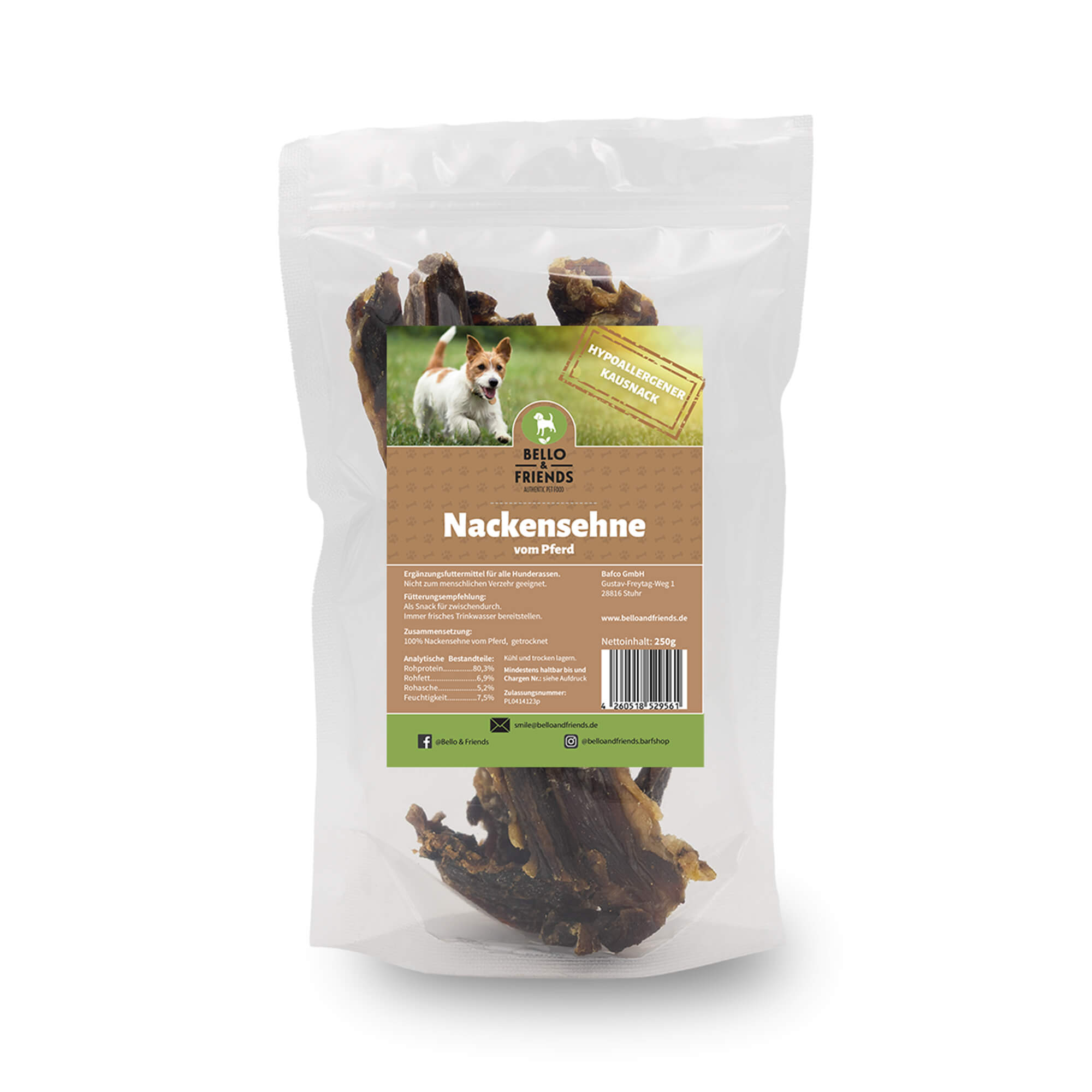 Getrocknete Pferdesehnen für Hunde sind ein hervorragender Gaumenschmaus für Hunde, die unter Allergien leiden. Pferdefleisch gilt als hypoallergern und sehr gut verträglich.