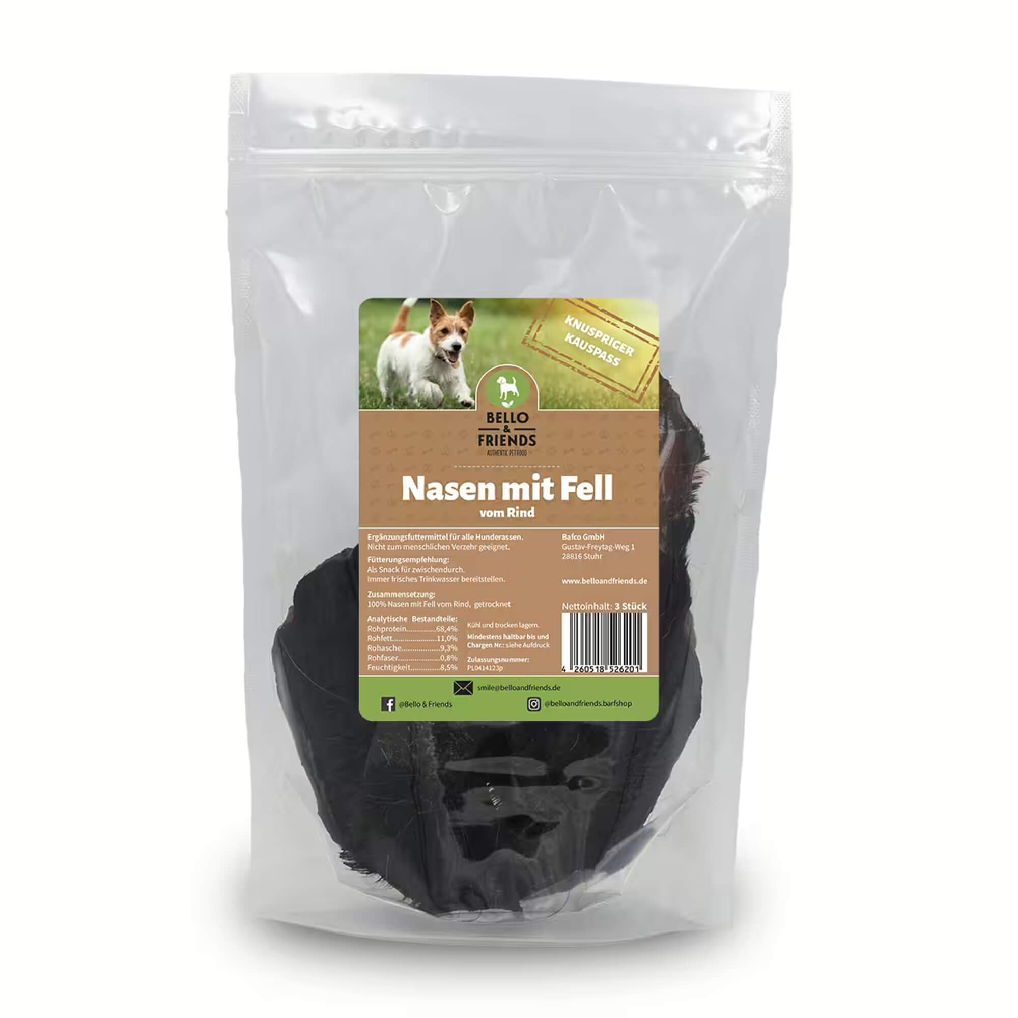 Gönne deinem Hund den besonderen Genuss einer getrockneten Rindernase mit Fell. Ob als Belohnung oder einfach nur, um deinen Hund glücklich zu machen – dieser Snack bietet Geschmack und Gesundheit in einem. Dein Hund wird den intensiven Geschmack lieben, und du kannst ihn mit gutem Gewissen füttern.