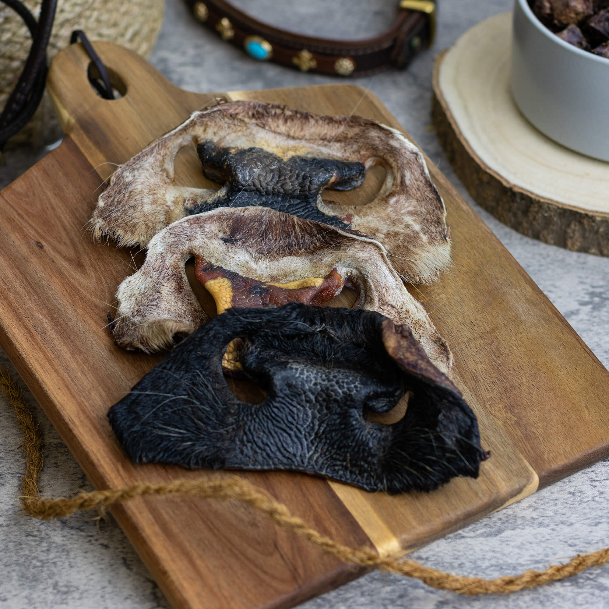 Die Rindernasen mit Fell sind nicht nur ein leckerer Snack, sondern haben auch gesundheitliche Vorteile. Beim Kauen auf dem robusten Material wird der Speichelfluss angeregt, was zur natürlichen Reinigung der Zähne beiträgt. Das Fell auf den Rindernasen hat zudem eine reinigende Wirkung auf den Magen-Darm-Trakt deines Hundes, da es wie ein sanfter Bürsteffekt wirkt.